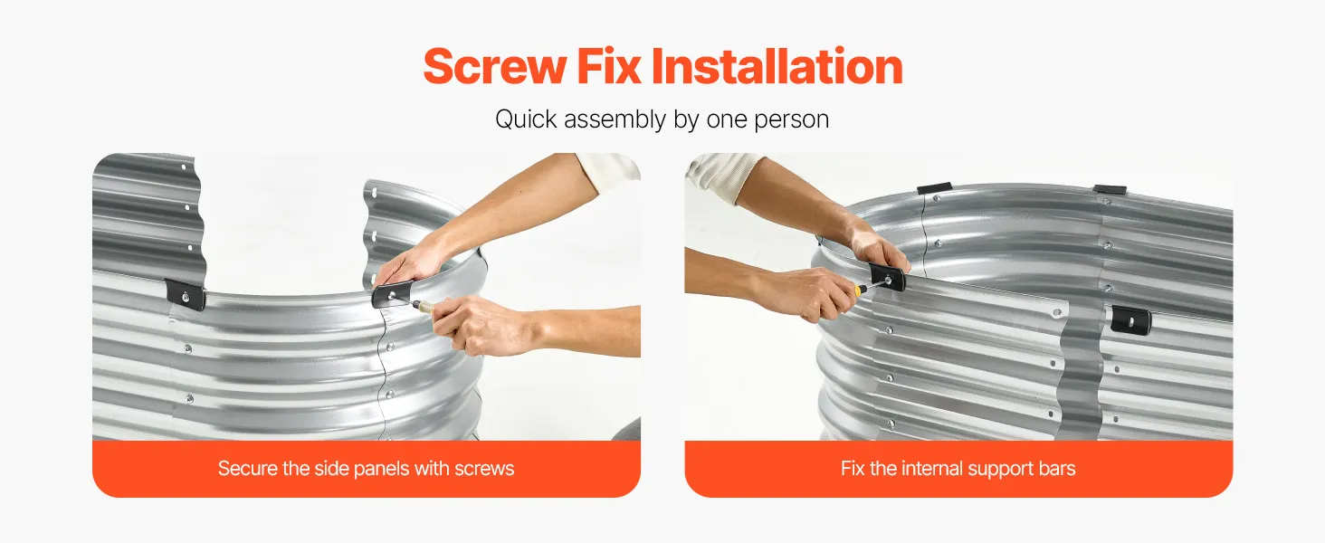 What You'll Get: Our raised garden bed includes 10 side panels, 10 edge protection strips, 80 galvanized screws, and a user manual.