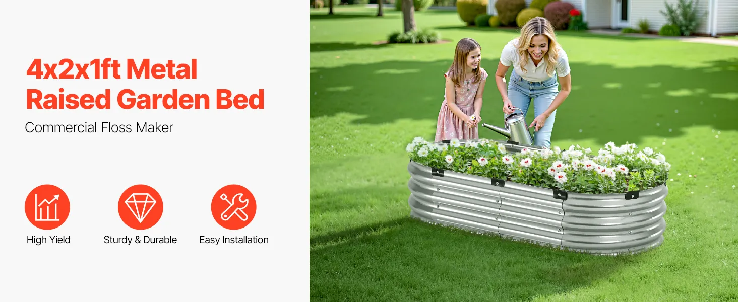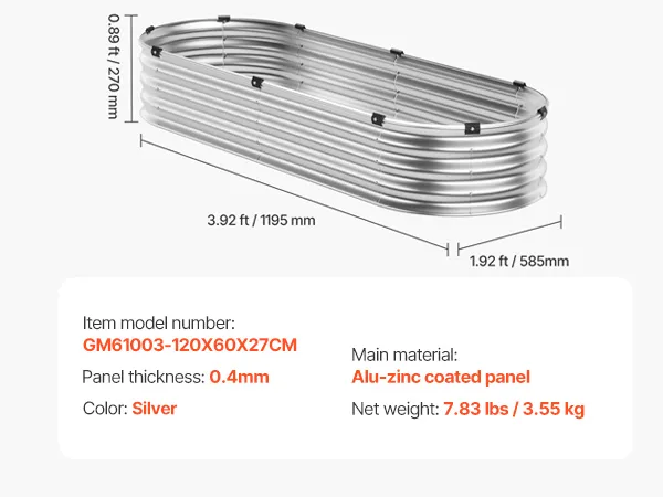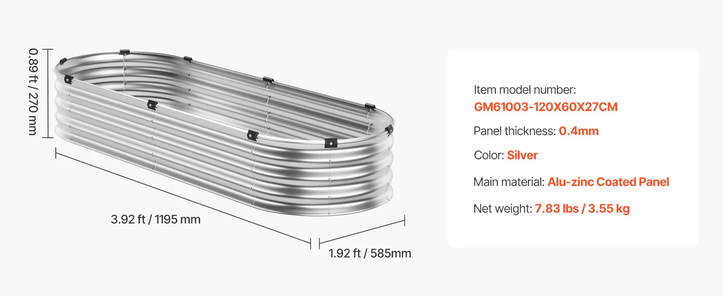 VEVOR Metal Raised Garden Bed, 4 x 2 x 1 ft Outdoor Galvanized Planter Box, with Open Bottom, Large Oval Planter Raised Bed for Gardening Vegetables, Flowers, Herbs, and Succulent Plants, Silver
