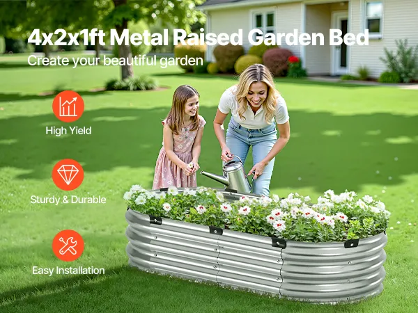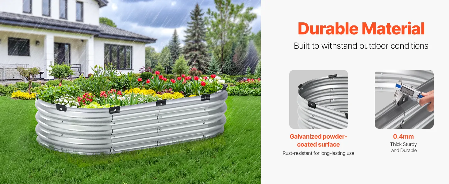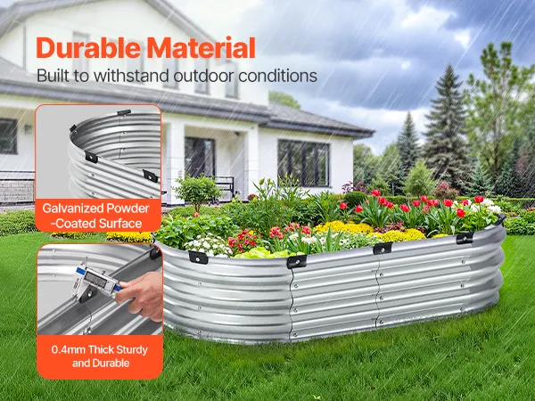 Sturdy and Durable: This metal raised garden bed is constructed with 0.4mm thick metal side panels. The surface is coated with galvanized powder for rust and corrosion resistance, ensuring long-term use in outdoor environments. Get ready to tackle the outdoors with confidence!