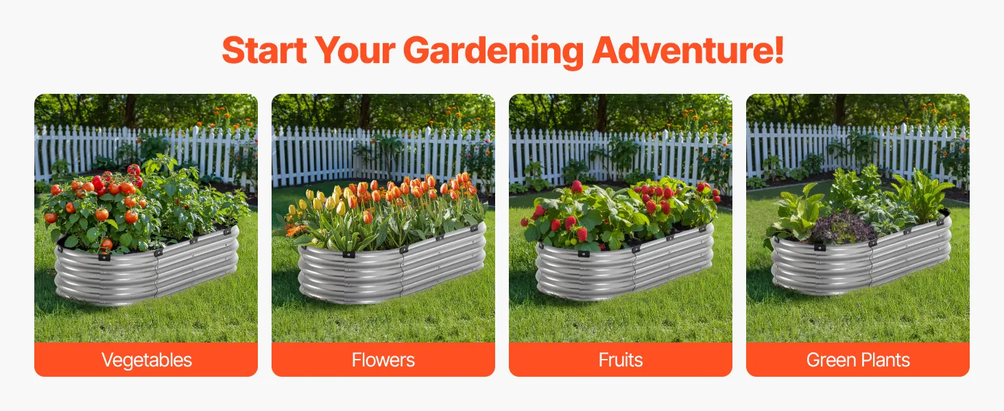 What You'll Get: Our raised garden bed includes 8 side panels, 10 edge protection strips, 1 pair of gloves, 40 galvanized screws, and a user manual.