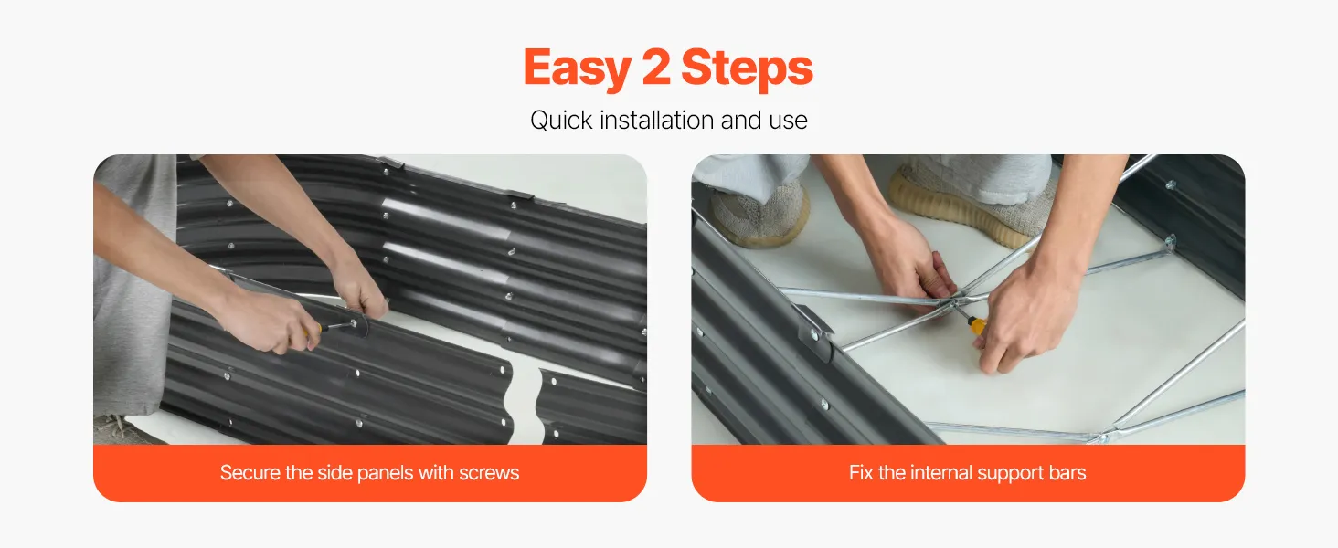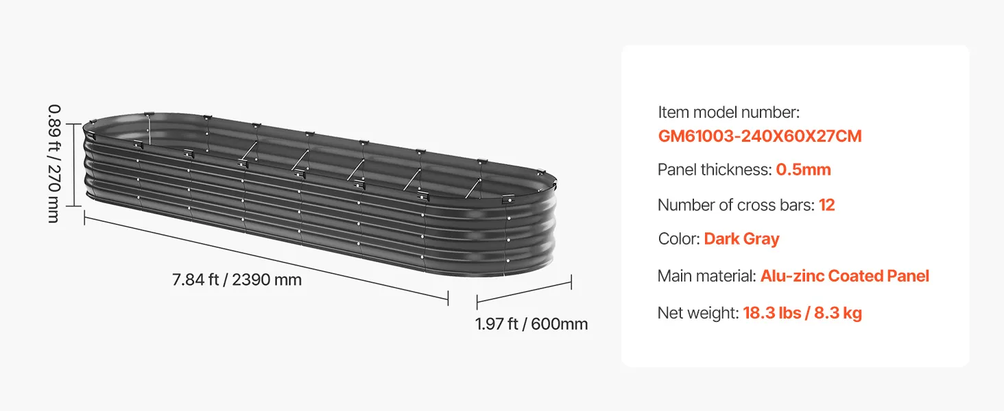What You'll Get: Our raised garden bed includes 14 side panels, 20 cross bars, 18 edge protection strips, 77 galvanized screws, and a user manual.