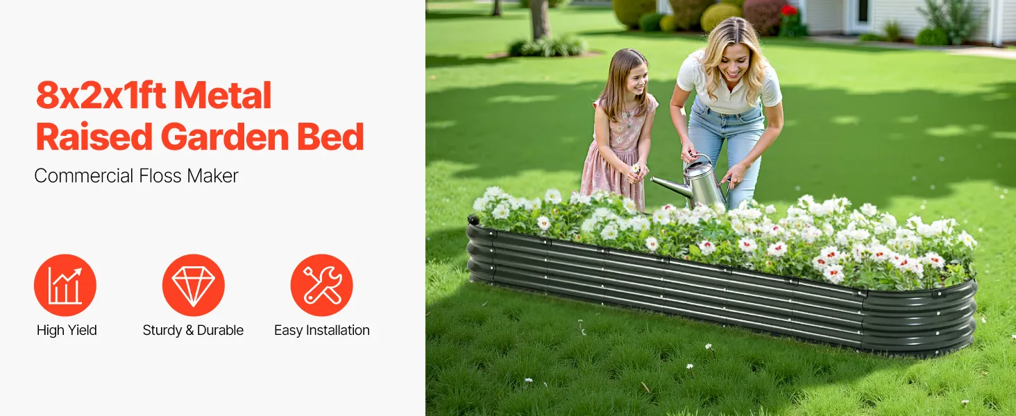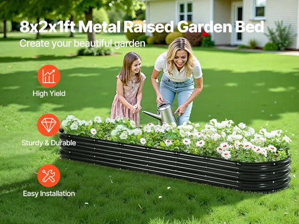 Create a Stunning Garden: Our 8 x 2 x 1 ft raised garden bed provides ample growing space for your plants. With a depth of 1 feet, it's perfect for various plants and vegetables to establish strong roots. Grow a variety of vegetables, fruits, flowers, and herbs in your garden, farm, field, or open area, and transform your space into a beautiful garden.