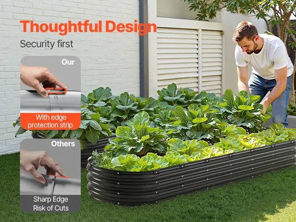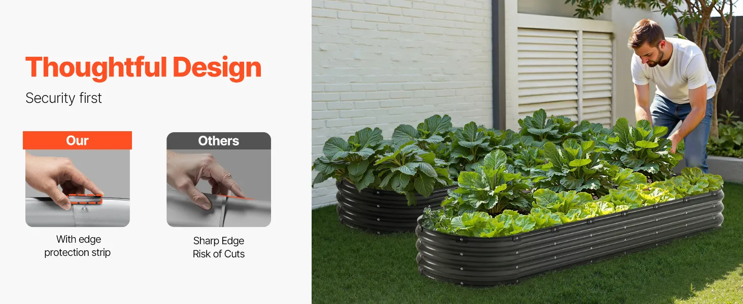 Secure to Use: To ensure your safety during use, our raised planter box features rolled edges with edge protectors to prevent hand injuries or scratches. Use with peace of mind and enjoy gardening effortlessly.