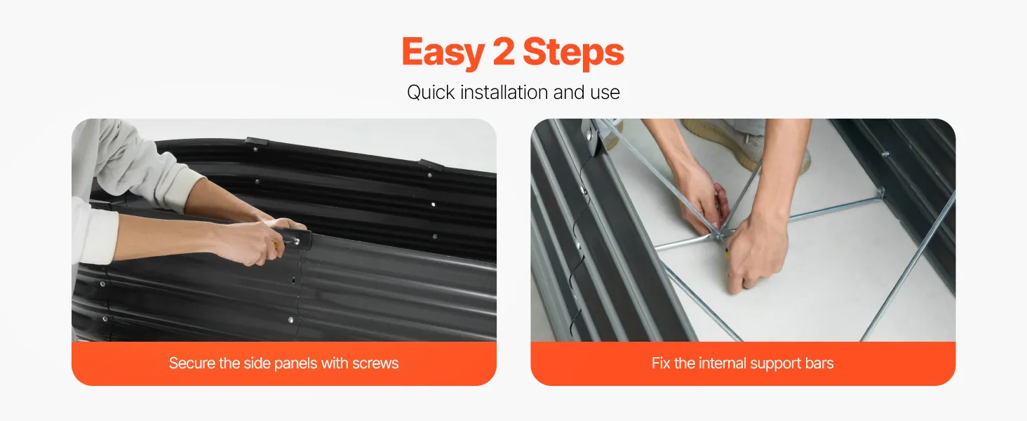 Eenvoudige installatie: uitgerust met volledige schroeven en een voorgeboord ontwerp, kunt u het verhoogde bed snel en eenvoudig monteren door de handleiding te volgen. De montage duurt slechts 15 minuten en vereist geen extra gereedschap. Dit maakt hem perfect voor tuinliefhebbers van alle niveaus, inclusief beginners.