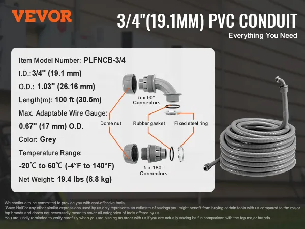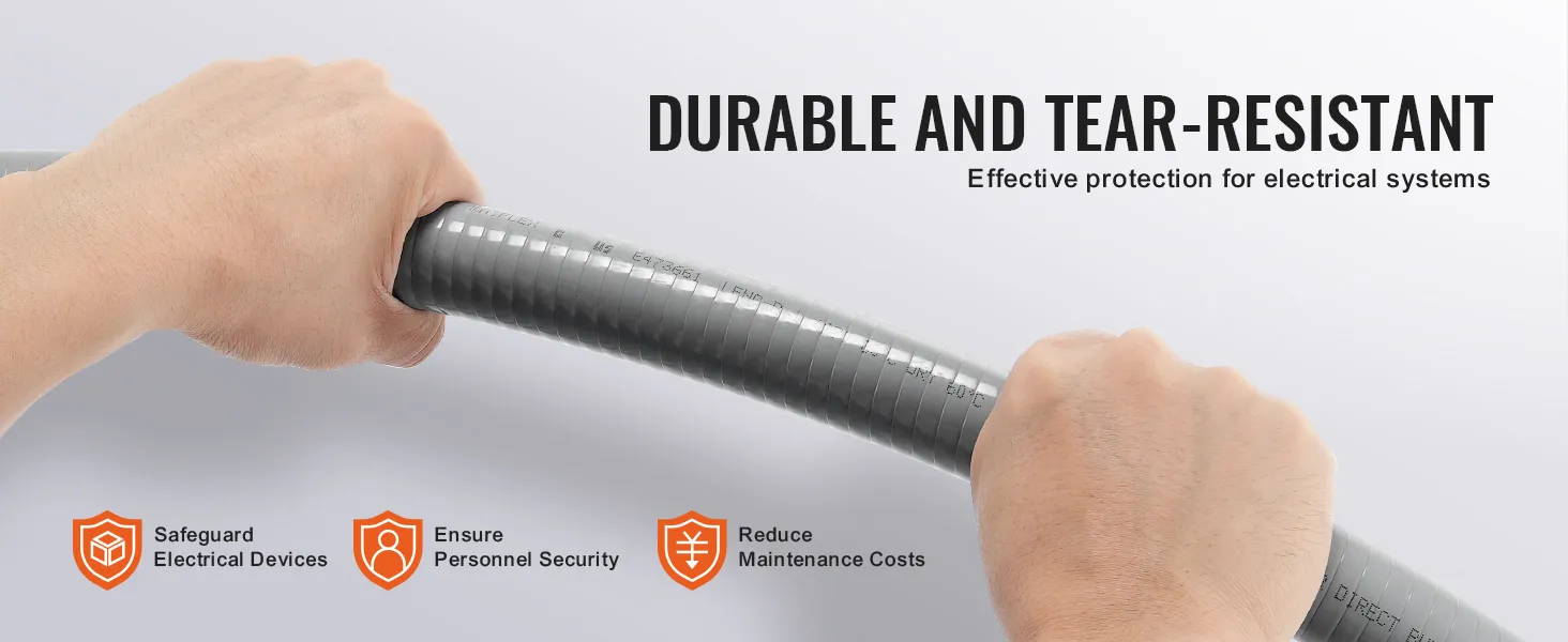 De VEVOR 3/4-inch flexibele elektrische leiding is ideaal voor krappe ruimtes. Het biedt eenvoudige installatie en wendbaarheid. Dit maakt het perfect voor complexe elektrische projecten. De flexibiliteit van de leiding zorgt ervoor dat deze om hoeken kan buigen zonder te knikken. Dat zorgt voor een soepele en veilige pasvorm in elke omgeving. U kunt de leidingen eenvoudig aanpassen aan uw behoeften, met name in ingewikkelde zolderruimtes of andere moeilijk bereikbare gebieden. De flexibiliteit van de leiding bespaart tijd en vermindert de behoefte aan extra fittingen. Onze leiding is ontworpen om uw elektrische werk te vereenvoudigen.