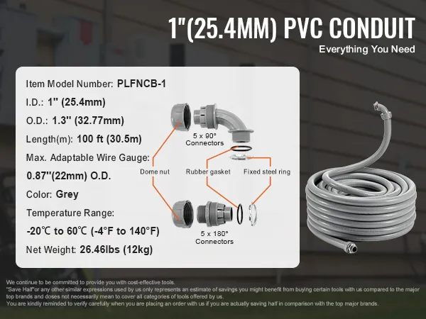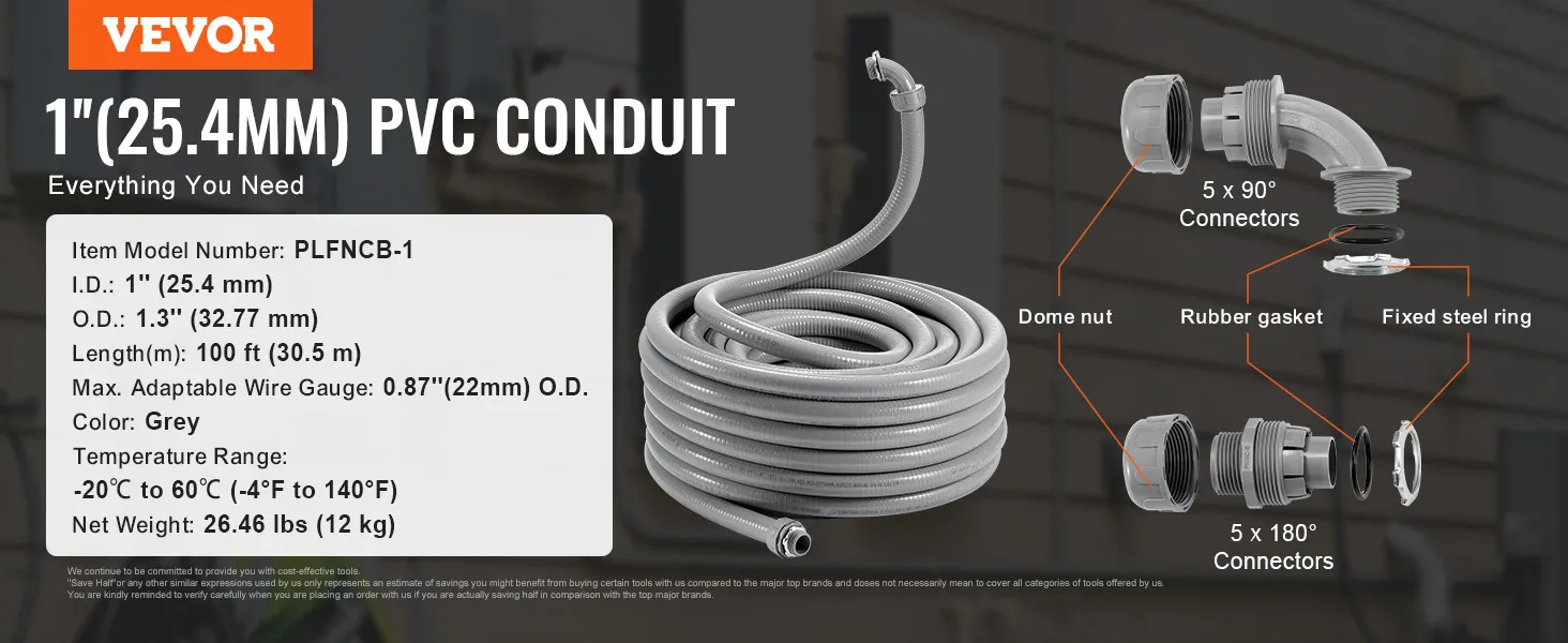 De VEVOR-buis is veelzijdig. Hij is geschikt voor zowel binnen- als buitenprojecten. U kunt hem gebruiken voor airconditioningmotorcontrollers of pompen. Hij is ook geweldig voor buitenverlichting of generatoraansluitingen. De buis biedt betrouwbare bescherming in elke omgeving. Dit betekent dat hij voldoet aan de behoeften van verschillende toepassingen. Het maakt niet uit of u op zolder of buiten werkt, deze buis valt op. Zowel de flexibiliteit als de duurzaamheid maken hem een veelzijdige keuze. Wij hebben een alles-in-één oplossing voor verschillende elektrische behoeften.