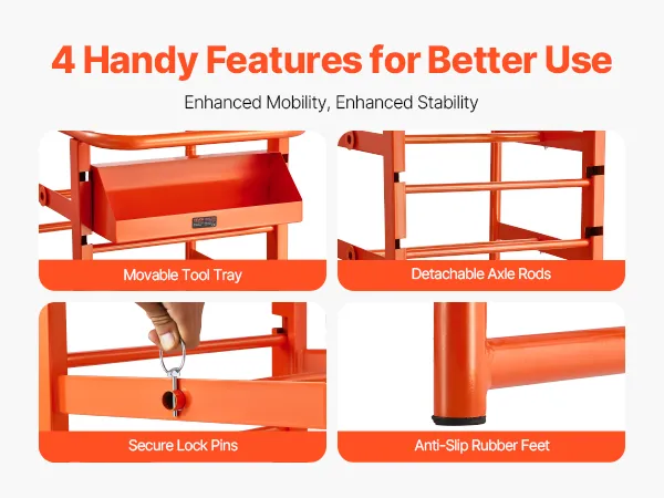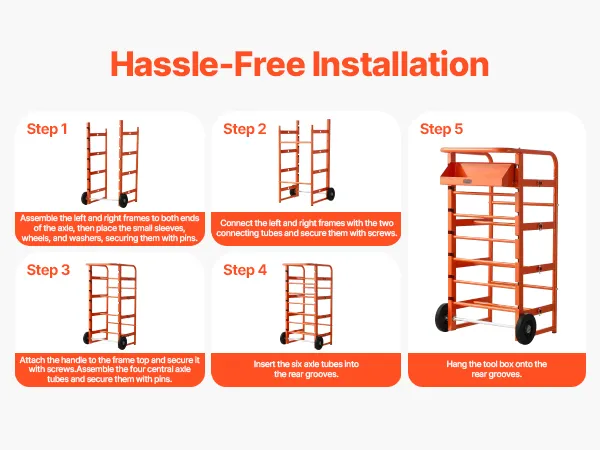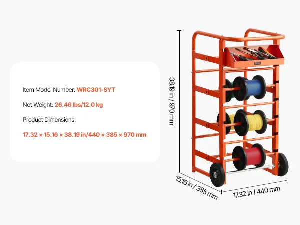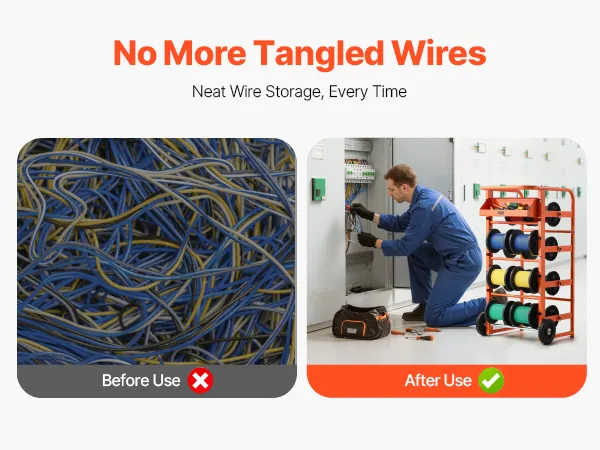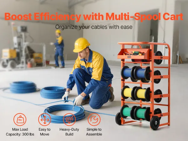Uitgerust met stevige, soepel rollende wielen, kan onze kabeltrolley zware lasten dragen en moeiteloos worden verplaatst, zelfs met kabels. Hij is ideaal voor het eenvoudig vervoeren van kabels, draden en gereedschap tussen werkplekken, garages en bouwplaatsen.