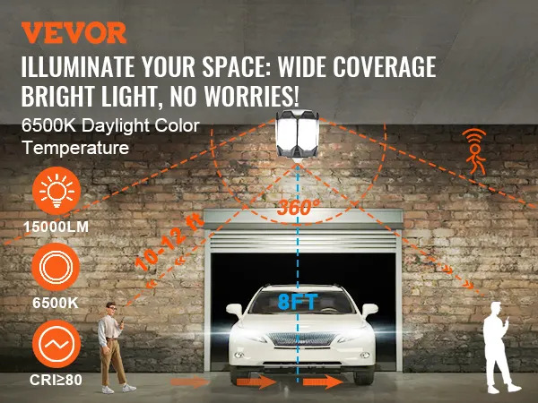 Light Up Your Garage Like Daylight: Need brightness? This garage light delivers 15,000 lumens of pure, bright light—just like stepping outside in the middle of the day. With a 6500K color temperature and a CRI of ≥80, your car's colors and shine will pop, and you'll easily spot those important warning signs, keeping things secure