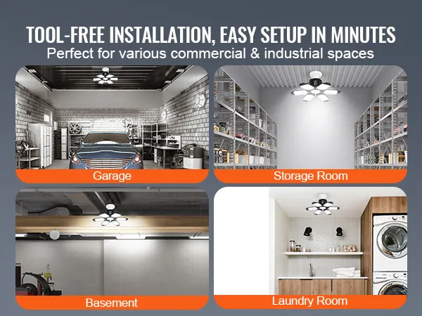 This garage ceiling light is incredibly easy to install—no tools or wiring required. Whether it's your garage, storage room, workshop, or basement, you can have it up and running in no time, saving you effort and time.