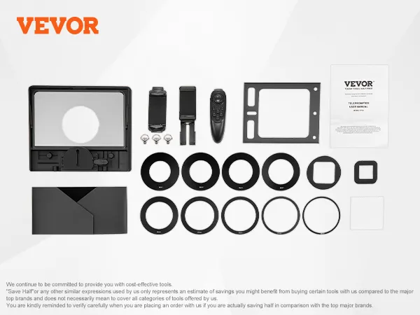 Abundant Accessory Set: The teleprompter comes with a variety of lens adapter 49/52/55/58/62/67/72/77/82 mm, dual-use clamp for cell phone and tablet, cell phone clamp, shade cotton, sunshade, dust cloth and other accessories. The device is easy to carry and use to meet different shooting needs.