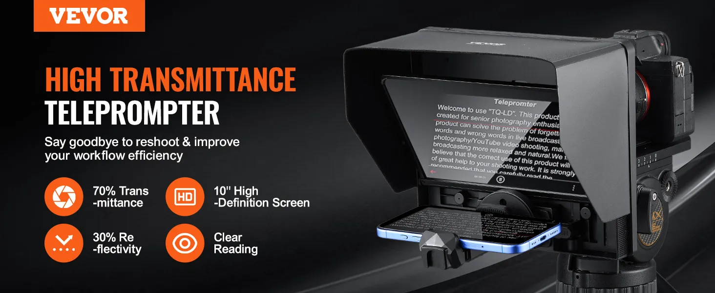 10'' Desktop Teleprompter for DSLR Webcam Smartphone Live Streaming