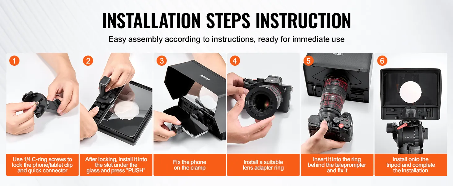 Provide clear installation steps. Users only need to follow the steps to quickly install and remove the teleprompter.