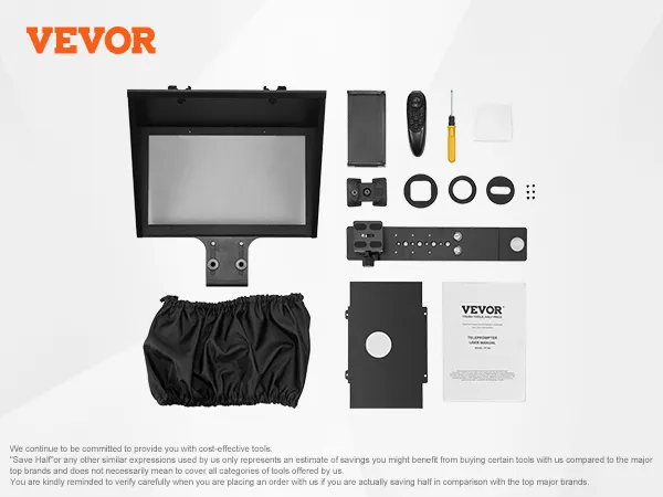 This teleprompter has an 13 in/33.02 cm high-definition spectroscope with 70% transmittance for clear script display. It supports devices up to 11 inches and can be controlled via an app or Bluetooth remote. Equipped with various lens adapters and clamps, it accommodates different shooting needs.