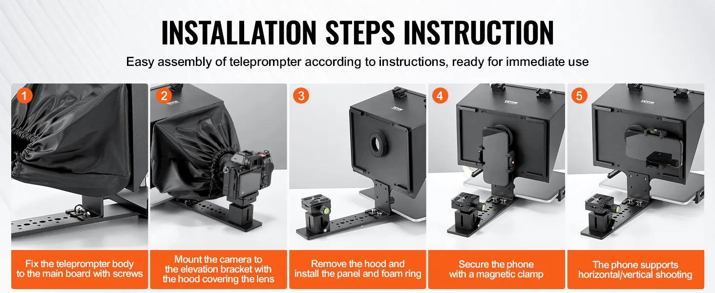 Provide clear installation steps. Users only need to follow the steps to quickly install and remove the teleprompter.