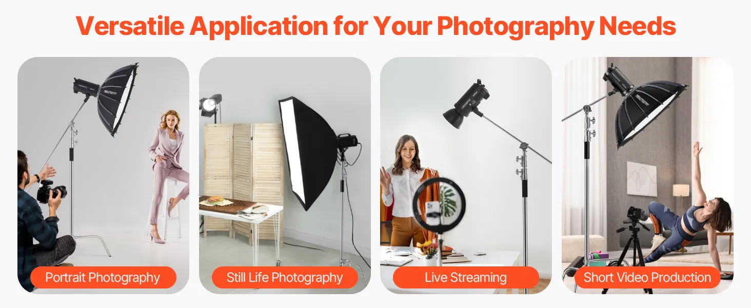 This heavy duty light stand is ideal for a wide range of settings, including portrait photography, still life shoots, live streaming, and film production. It meets the diverse needs of photographers and videographers, offering reliable support across various creative projects.