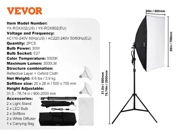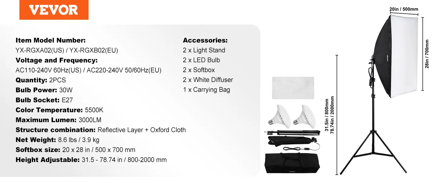 VEVOR 500x700 mm fotografie-softbox-verlichtingsset