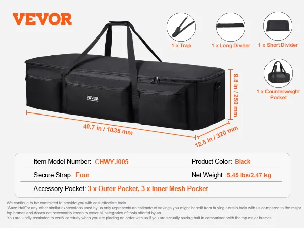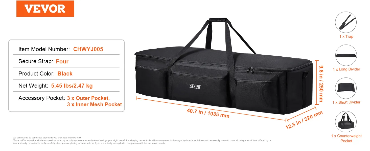 VEVOR Telescope Case, 1035 mm, Telescope Large Storage Bag with Fixed Buckles, Multi-Pocket & Detachable Divider, Shock-Absorbent Telescope Carrying Bag for Optical Tube & Tripod, Counterweight Pocket