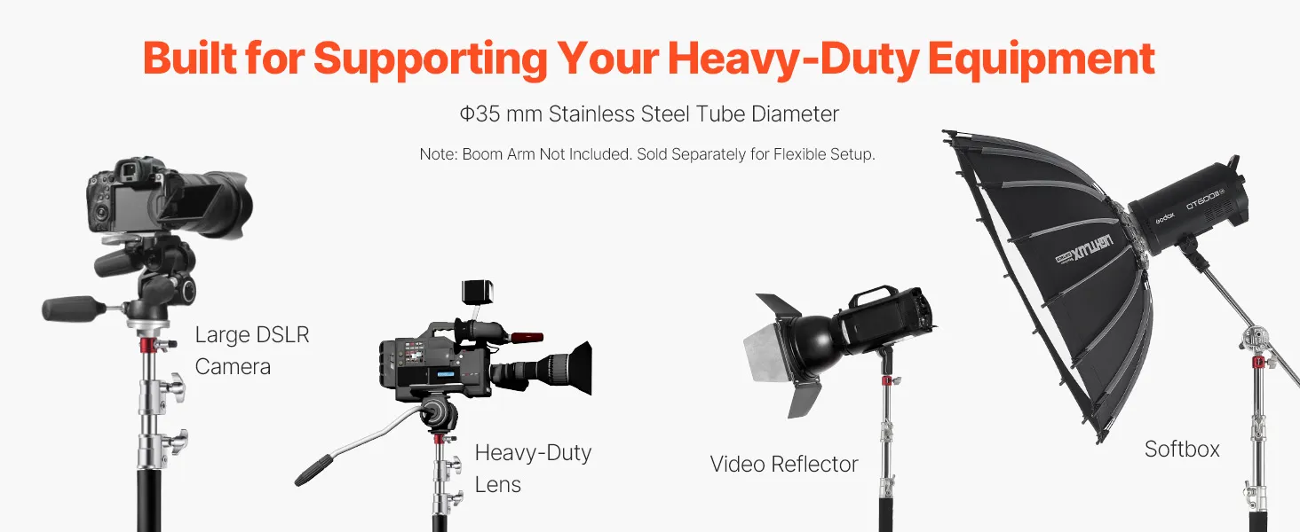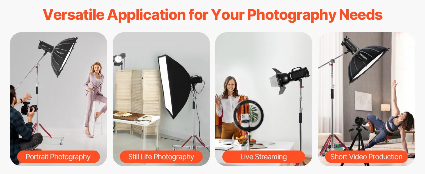 This heavy duty light stand is ideal for a wide range of settings, including portrait photography, still life shoots, live streaming, and film production. It meets the diverse needs of photographers and videographers, offering reliable support across various creative projects.