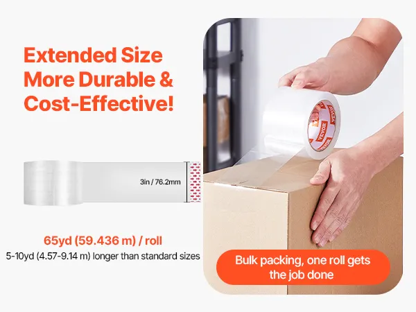 Our cost-effective clear packing tape set includes 6 rolls of 3-inch core tape. Each roll measures 65yd / 59.436m in length—5-10yd / 4.57-9.14m longer than standard options. That means more tape, less frequent replacements, and a more economical solution for all your packing projects.
