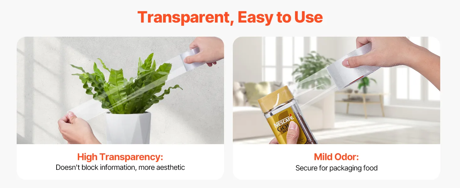 Easy to Use: Our heavy duty clear packing tape is compatible with standard dispensers or can be torn by hand, making packing quick and efficient. High transparency ensures clear labeling without blocking important information.