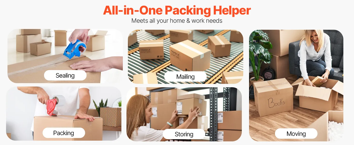 Veelzijdige toepassing: De verpakkingstape is ideaal voor magazijnen, woningen en kantoren. Ideaal voor verzending, inpakken, het verzegelen van dozen en het verwijderen van dierenhaar van kleding.