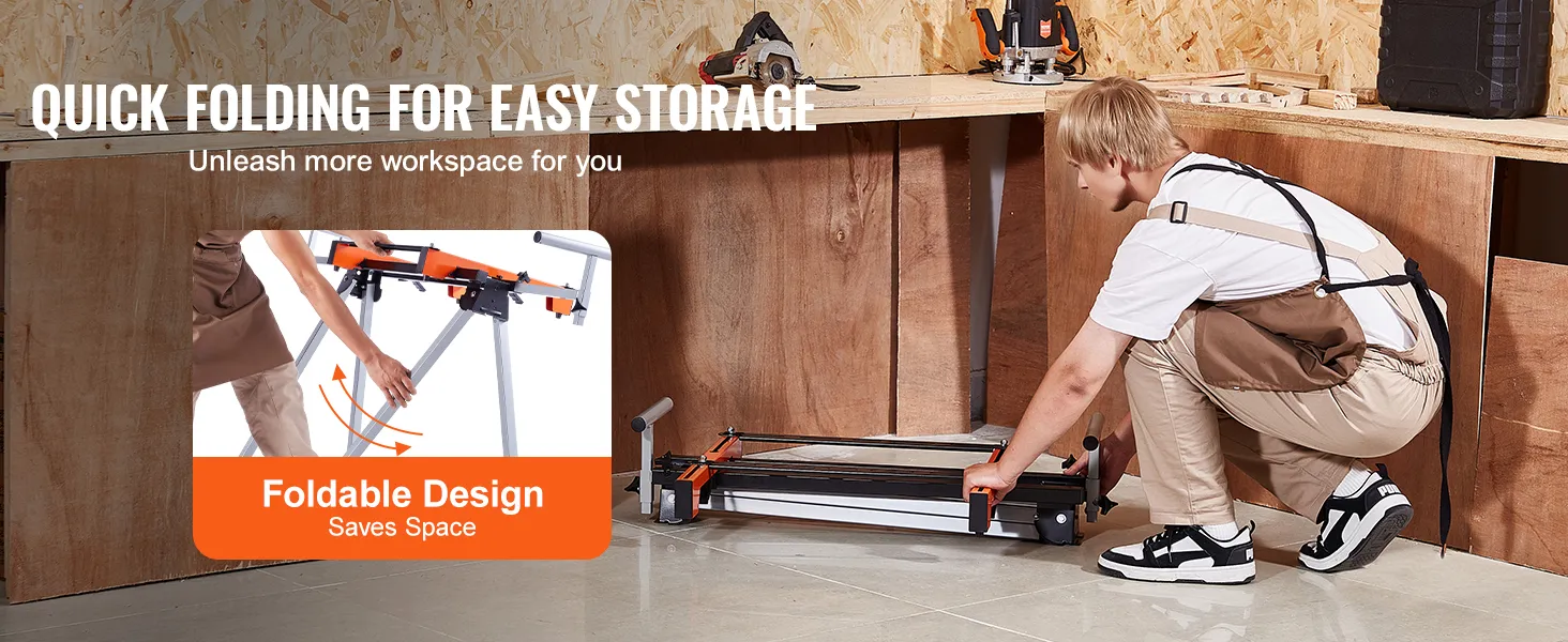 Portable & Space-Saving: Equipped with foldable legs, this stand for miter saw offers effortless mobility for both outdoor jobs and indoor projects. When stored, it saves substantial space, keeping your tools organized and accessible.