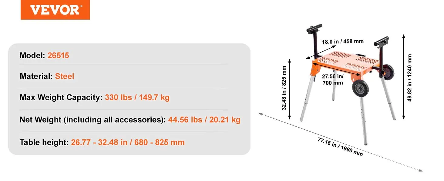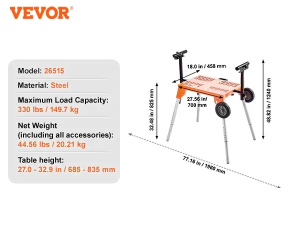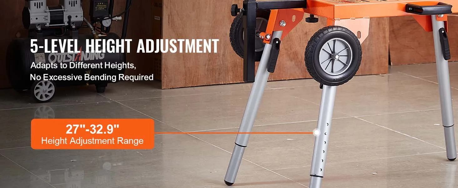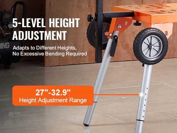 Hoogteaanpassing op vijf niveaus: Dankzij de verstelbare hoogte van 27 tot 32,9 inch (685-835 mm) kunt u een comfortabele positie vinden op basis van uw lengte. Onze verstekzaagstandaard vermijdt overmatig buigen, waardoor u een natuurlijke houding kunt behouden en kunt genieten van meer comfort en uithoudingsvermogen tijdens langere werkperioden.