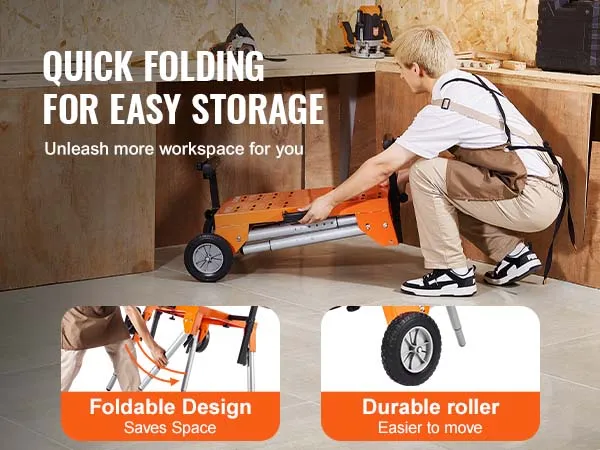 Snel opvouwbaar: de opvouwbare poten van de draagbare verstekzaagstandaard hoeven niet afzonderlijk te worden geïnstalleerd, waardoor de afmetingen in opgevouwen toestand aanzienlijk worden verkleind. Transport en opslag zijn vereenvoudigd, waardoor u ruimte kunt besparen en uw gereedschap georganiseerd en efficiënt kunt houden.