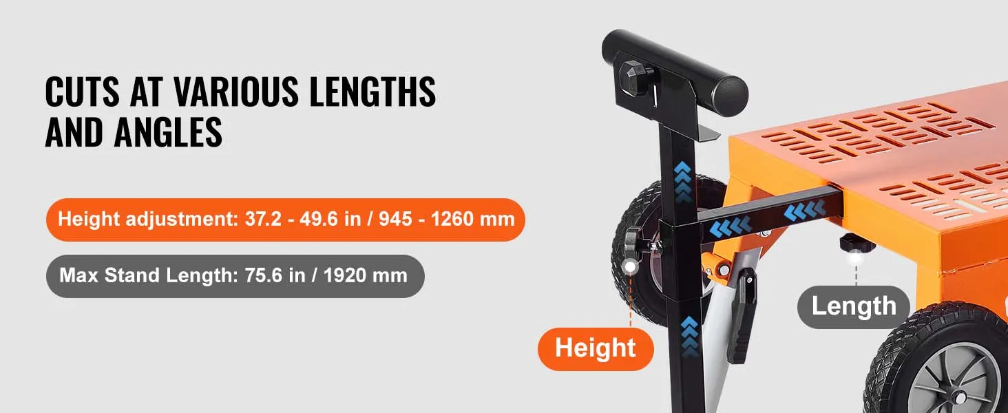 Deze verstekzaagtafel is ideaal voor het zagen van grote en lange materialen. Hij is in hoogte en lengte verstelbaar, waardoor een handigere en comfortabelere werkpositie mogelijk is en u gemakkelijker en productiever kunt werken.
