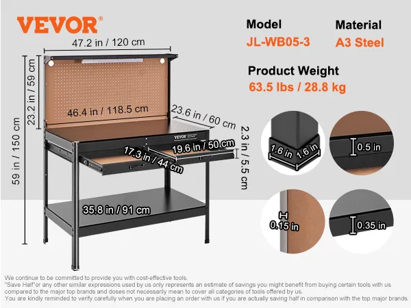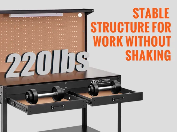 Indrukwekkend draagvermogen: onze werkbank is uitgerust met stevige rubberen voetjes, past zich aan oneffen vloeren aan en biedt slipweerstand en nivelleringsondersteuning. Hij kan een opmerkelijk gewicht van maximaal 220 pond dragen, waardoor hij perfect is voor het uitvoeren van zware projecten.