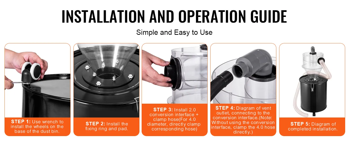 Deze afscheider is perfect voor gebruik met industriële en huishoudelijke stofzuigers en vangt stof en vuil op voordat de lucht het filter bereikt. Dit vermindert verstoppingen en verlengt de levensduur van uw stofzuiger