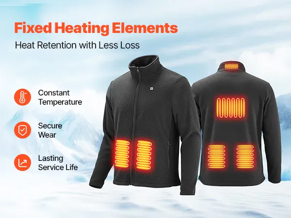 Deze verwarmde jas is voorzien van vaste verwarmingselementen die nauwsluitend vastzitten en niet verschuiven, waardoor een constante temperatuur gegarandeerd is. De knoopvrije en kortsluitingsbestendige eigenschappen zorgen voor betrouwbaarheid en een langere levensduur.