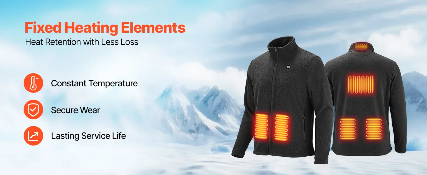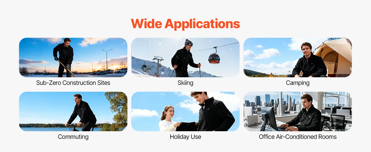 Geschikt voor alle gelegenheden: Deze verwarmde fleecejas is ontworpen voor koud buitenwerk, sport, kamperen, fietsen, vakantie en ruimtes met airconditioning. De betrouwbare prestaties zorgen voor continue en constante warmte, altijd en overal.