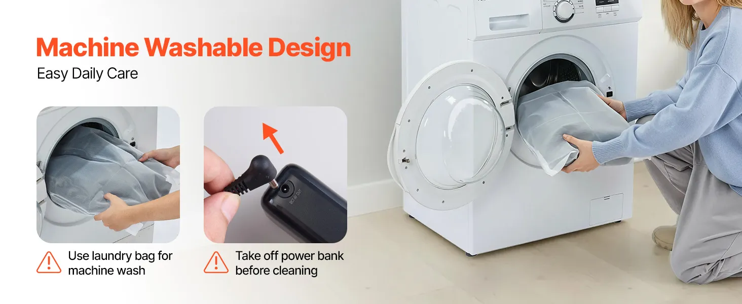 Het wassen en onderhouden van deze verwarmde jas is heel eenvoudig: verwijder de powerbank, doe de trui in een waszak en was hem direct in de wasmachine. Deze stappen zorgen ervoor dat de jas zijn vorm behoudt en schoon blijft.