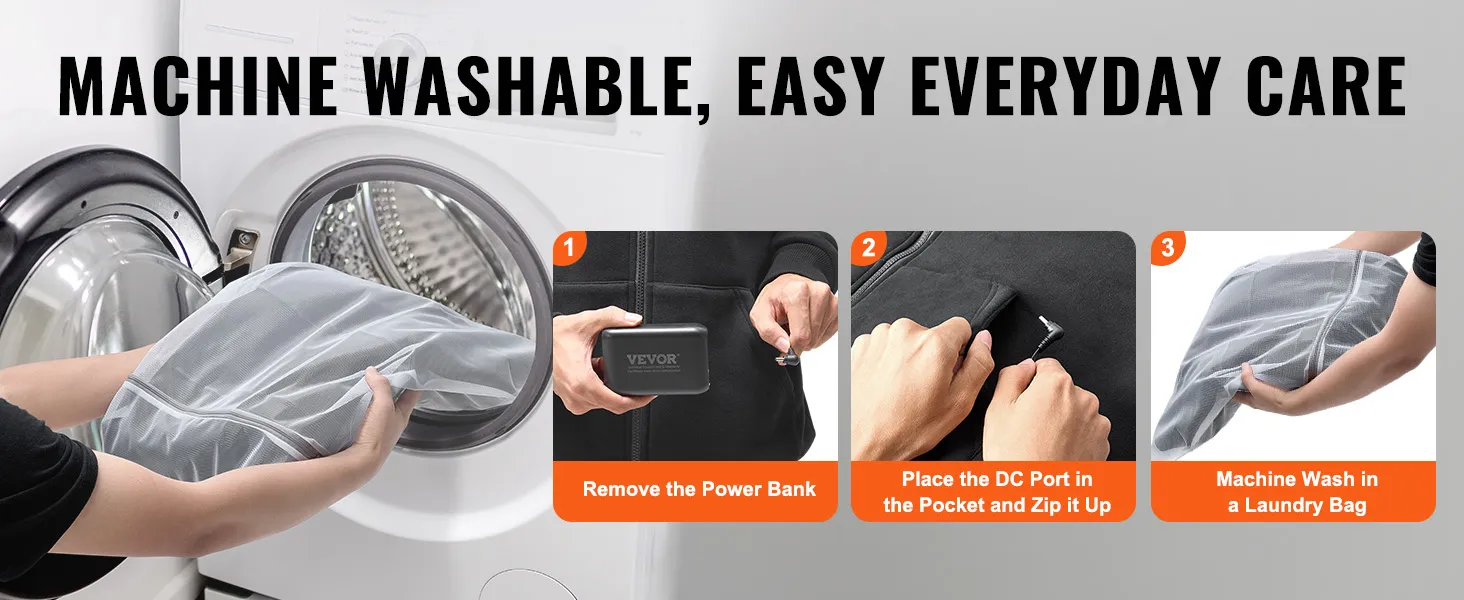This heated sweatshirt is made of high-quality fabrics that are not only soft to the skin but also provide excellent warmth. It is machine washable and requires a laundry bag, which greatly simplifies the maintenance process.