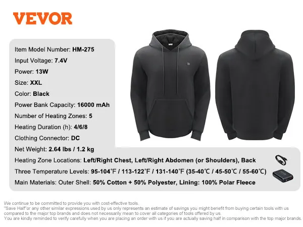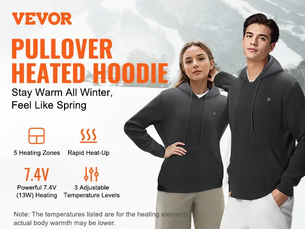 Upgrade Heating Performance: This hoodie adopts high efficiency carbon fiber heating technology, high power heating system, electric heated hoodie takes a leap in preheat duration thanks to the great thermal conductivity. It will heat before you can notice it. Note: The above temperature is the temperature of the heating wire, the actual temperature of the human body will be lower than the heating temperature indicated in some heating jackets. Warm Tips: We recommend choosing a size larger than you usually wear!