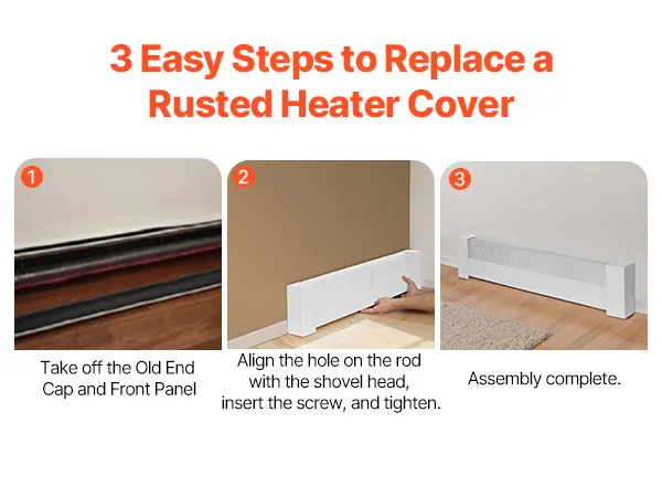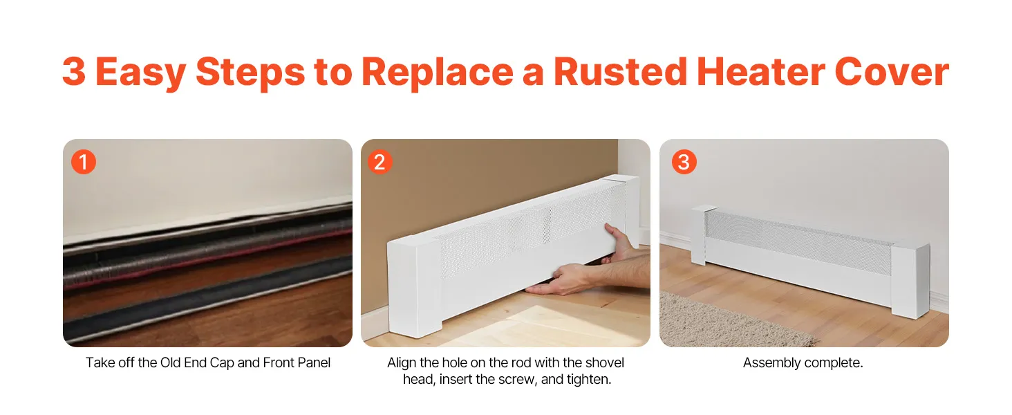 Vervang uw roestige plintverwarmingsbekleding in slechts 3 eenvoudige stappen. Geen ingewikkelde procedures of professioneel gereedschap nodig, ideaal voor beginners, en geeft uw verwarming een frisse, nieuwe look.