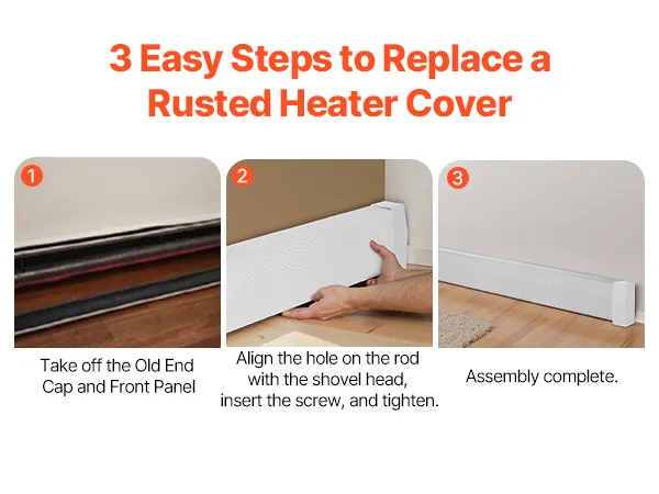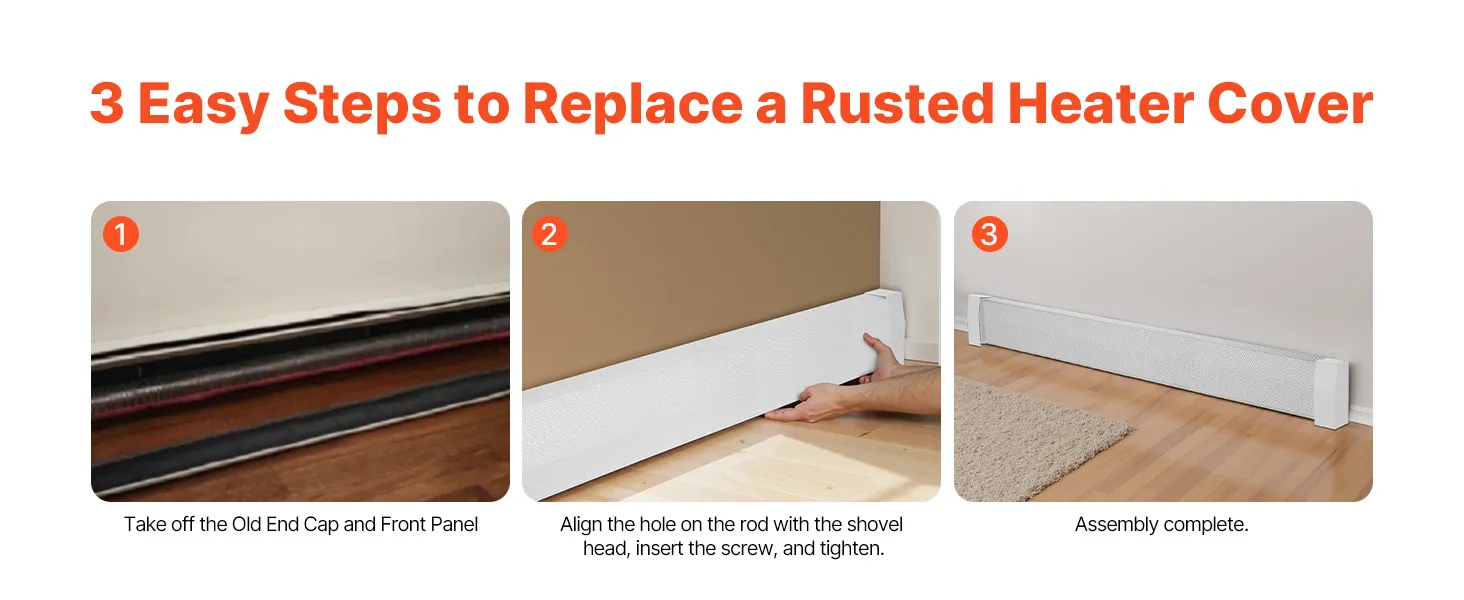 Vervang uw roestige plintverwarmingsbekleding in slechts 3 eenvoudige stappen. Geen ingewikkelde procedures of professioneel gereedschap nodig, ideaal voor beginners, en geeft uw verwarming een frisse, nieuwe look.
