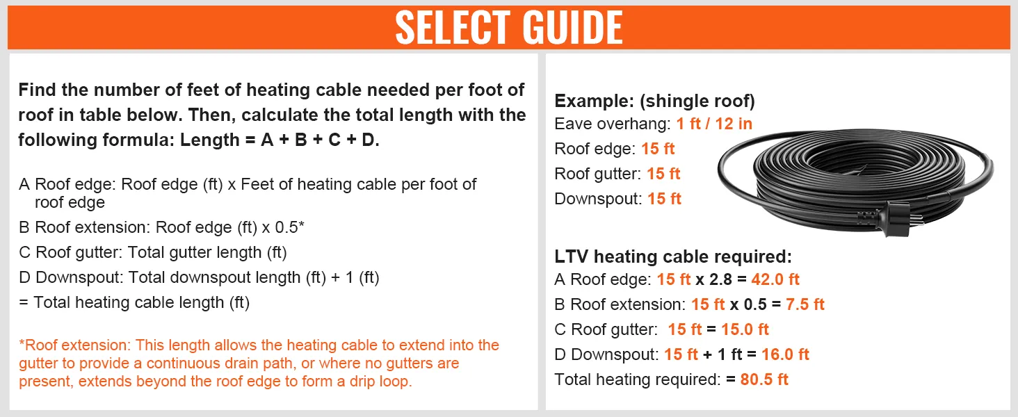Versla de winter: behandel uw leidingen en dak goed en weersta de strengste winters. Onze zelfregelende verwarmingsbuiskabel met een netsnoer van 1,85 m is ontworpen om ijsdammen op daken, regenpijpen en in dakgoten te voorkomen. Bescherm uw dak tegen schade en lekkages. Zorg ervoor dat het water continu in de goten en regenpijpen stroomt.