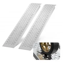 Dat ruwe oppervlak minimaliseert de kans dat de heftruck of vrachtwagen tijdens het laden slipt. Zijrails zijn ook geïntegreerd om ongelukken door over de rand te voorkomen en uw team en apparatuur te beschermen. Dankzij deze veiligheidsverbeteringen is het laden van zware voorwerpen geen probleem meer, omdat VEVOR draagbare laadbruggen risico's verminderen en de efficiëntie op de werkplek verbeteren.