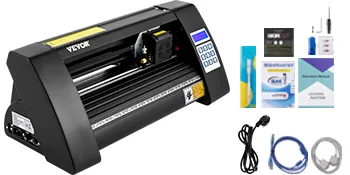 Deze bordensnijplotter inclusief complete accessoires voor een beter gebruik, zoals USB-stick inclusief installatie- en gebruikershandleiding, 5 vinylvellen, snijmat en verwisselbare messen. Het biedt ook een zekering met een noodstopfunctie om u te beschermen tegen gevaar.