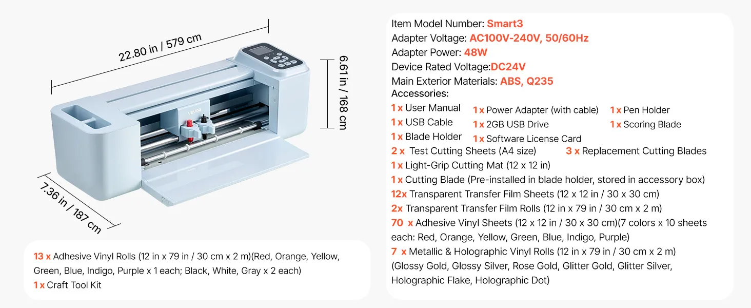 Veelzijdig voor doe-het-zelfprojecten: Deze vinylsnijder is geschikt voor vinyl, transferpapier, karton, folie, speciaal papier en nog veel meer. Perfect voor stickers, mokken, kleding, wenskaarten, decoraties en zelfgemaakte cadeaus.