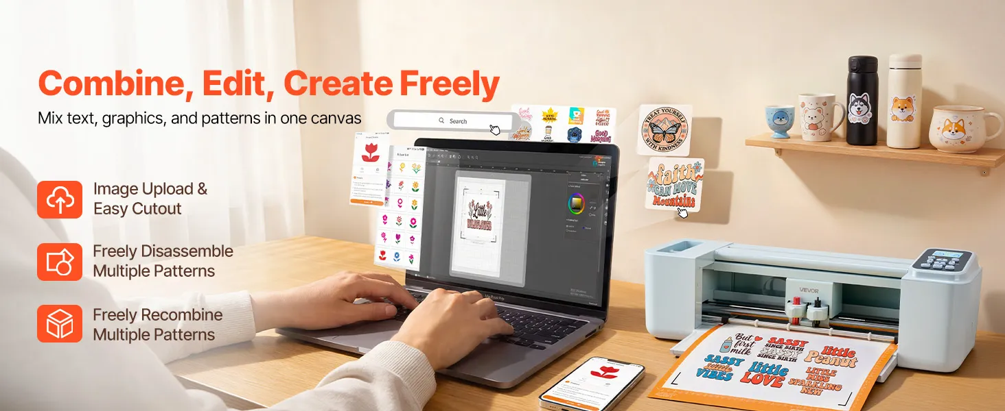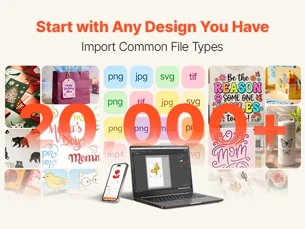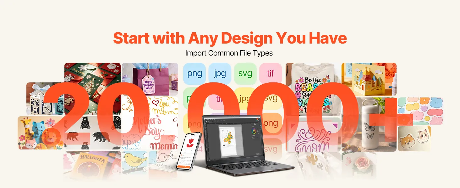 Deze vinylplotter verwerkt probleemloos alle gangbare ontwerpbestanden, zodat elke geüploade afbeelding nauwkeurig kan worden verwerkt voor uw doe-het-zelfprojecten.