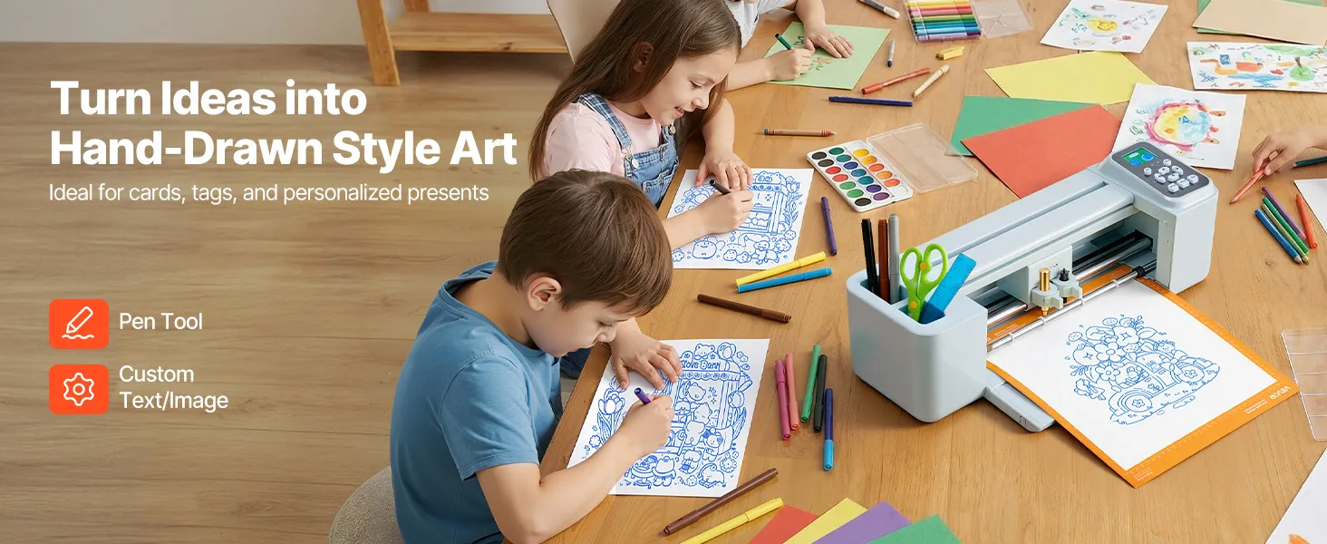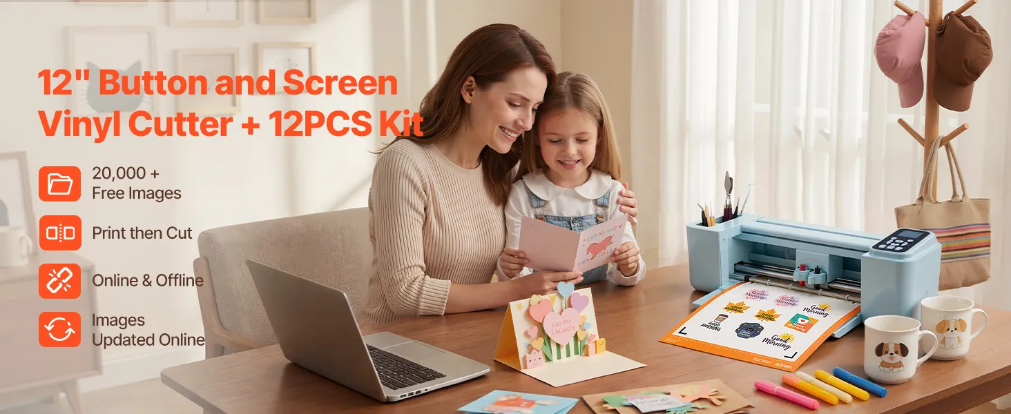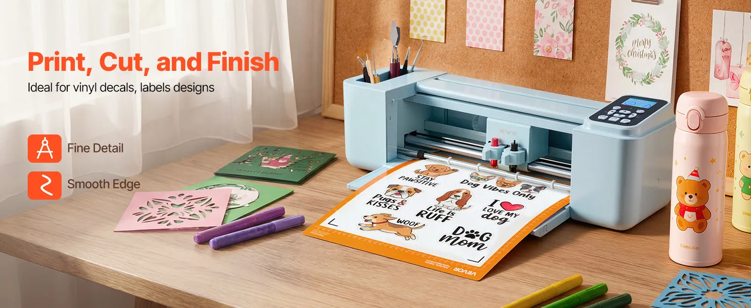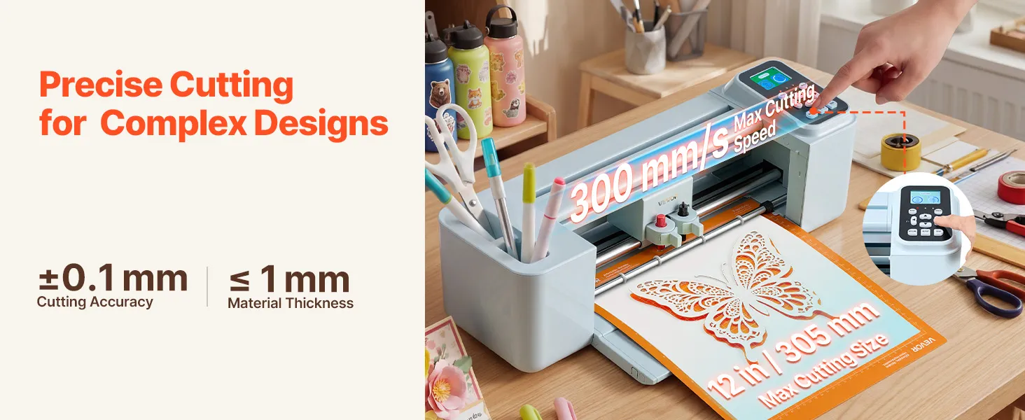 Deze desktop vinylsnijder is speciaal ontworpen voor creatieve professionals en combineert intelligente automatisering, gebruiksvriendelijke ontwerpsoftware en brede materiaalcompatibiliteit in een compact apparaat. Of u nu gepersonaliseerde stickers en textiel maakt, of kaarten, etiketten en decoraties, met deze machine kunt u uw ideeën met minder moeite en grotere betrouwbaarheid omzetten in afgewerkte projecten.