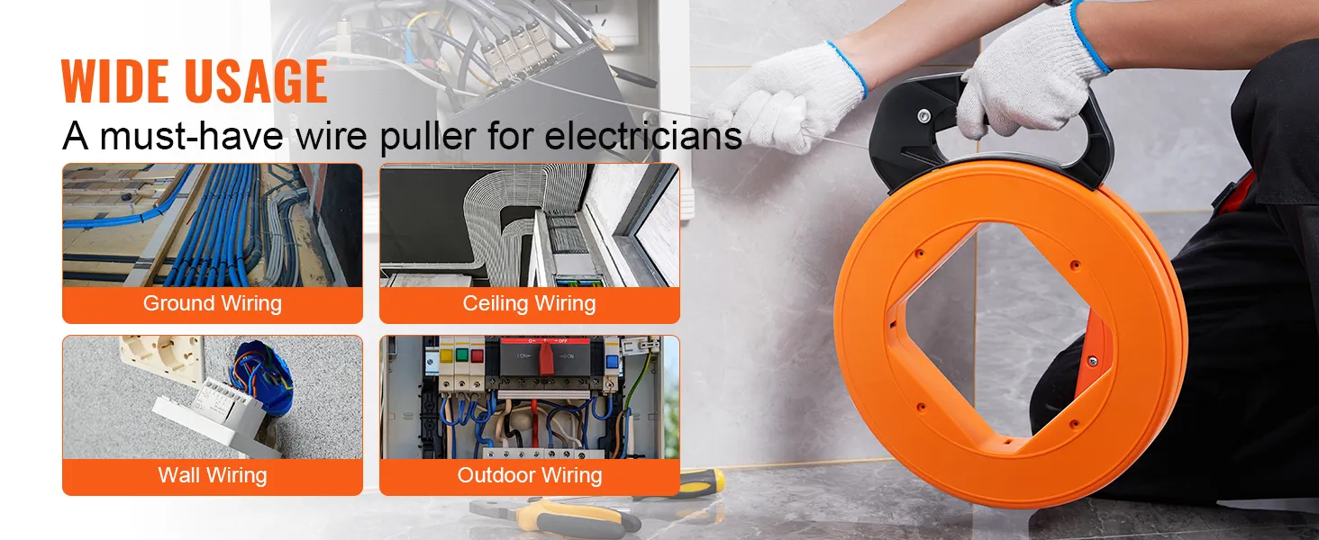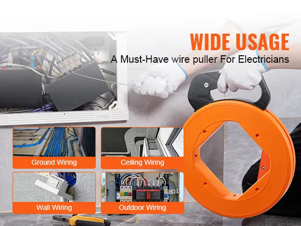 Allrounder in bekabeling: de eerste keuze voor kabelinstallaties binnenshuis. Van bedrading van muren tot vloeren, van telecommunicatie tot algemene elektrische installaties: deze kabeltrekker met treklint heeft het allemaal! En vergeet vooral niet om handschoenen te dragen als u aan het werk bent. Veiligheid staat voorop, plezier staat altijd voorop!
