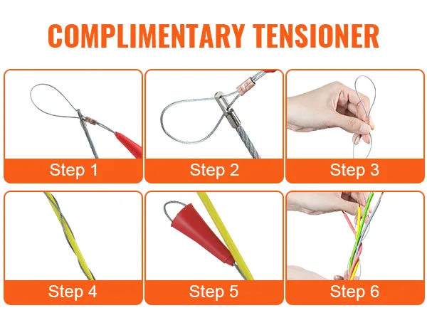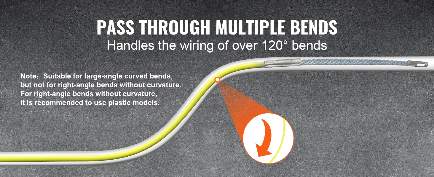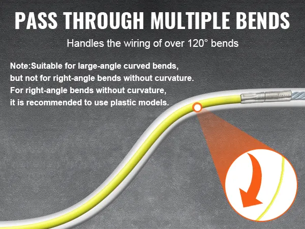 Glijden als een droom: dankzij de trekkop van vernikkeld koolstofstaal zorgt onze vislint ervoor dat kabels soepel door leidingen glijden en eenvoudig door ingewikkelde bochten kunnen navigeren zonder te blijven haken. Zeg vaarwel tegen frustrerende kabelopstoppingen