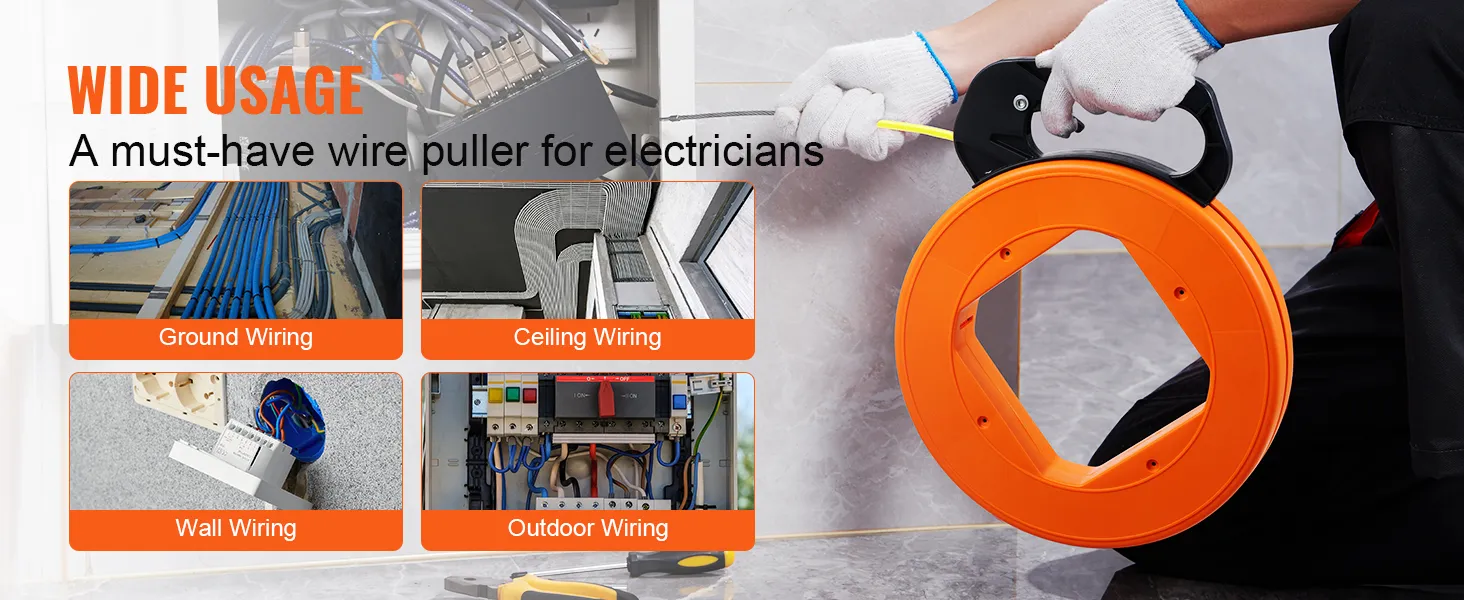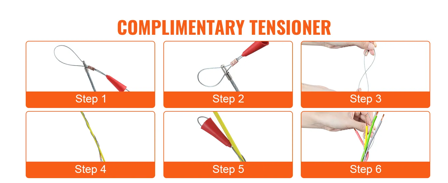 Deze kabeltrekker is ideaal voor commerciële bekabelingswerkzaamheden en reparaties aan woningen. Niet geleidend, roestbestendig en heeft de neiging om uit te rekken. En het duimslot? Het is alsof je een extra hand hebt. Beweeg, gebruik en groove ermee.