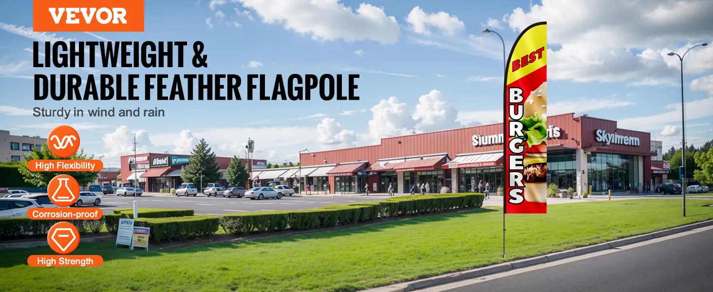 PREMIUM MATERIAAL: Gemaakt van hoogwaardige aluminiumlegering en glasvezel met een wanddikte van 1 mm, de burgerreclame-veervlaggenset is zowel lichtgewicht als stevig. Het glasvezelblad is corrosie- en buigbestendig en biedt uitstekende wind- en roestbestendigheid voor langdurig gebruik buitenshuis.