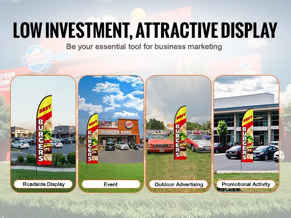 Kosteneffectieve marketingtool: de Swooper vlaggenmastset is compatibel met verschillende veren- of traanvlaggen en is geschikt voor verschillende commerciële en evenementenomgevingen. Het is een kosteneffectieve keuze om de zichtbaarheid van het merk te vergroten tijdens buitenactiviteiten, in winkels of in drukke straten.