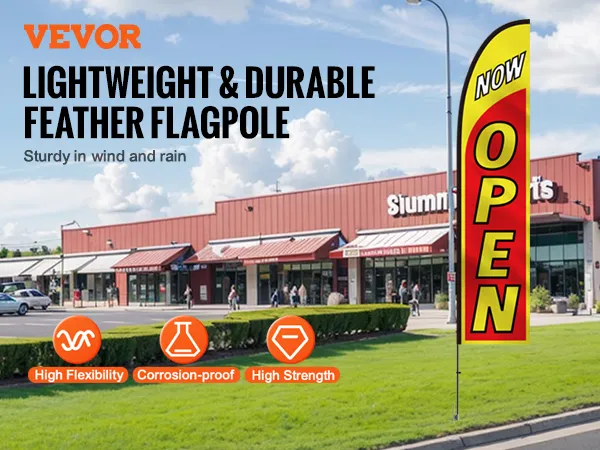 De VEVOR-bedrijfsvriendelijke open vlaggen zijn gemaakt van hoogwaardige aluminiumlegering en glasvezel. De wanddikte van 1 mm zorgt ervoor dat ze zowel lichtgewicht als sterk zijn. De bovenkant van glasvezel is corrosiebestendig en buigbestendig en biedt uitstekende wind- en roestbestendigheid voor langdurig buitengebruik. Het grote formaat verbetert de zichtbaarheid, waardoor het een uitstekende keuze is voor buitenreclame en evenementen.
